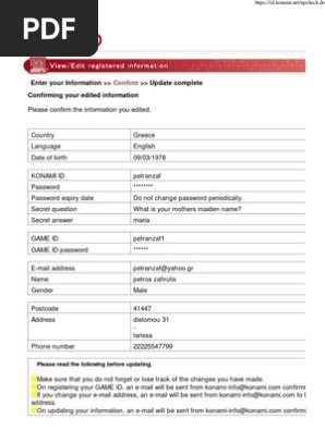 Advice On My Account Konami Email Id Wepes